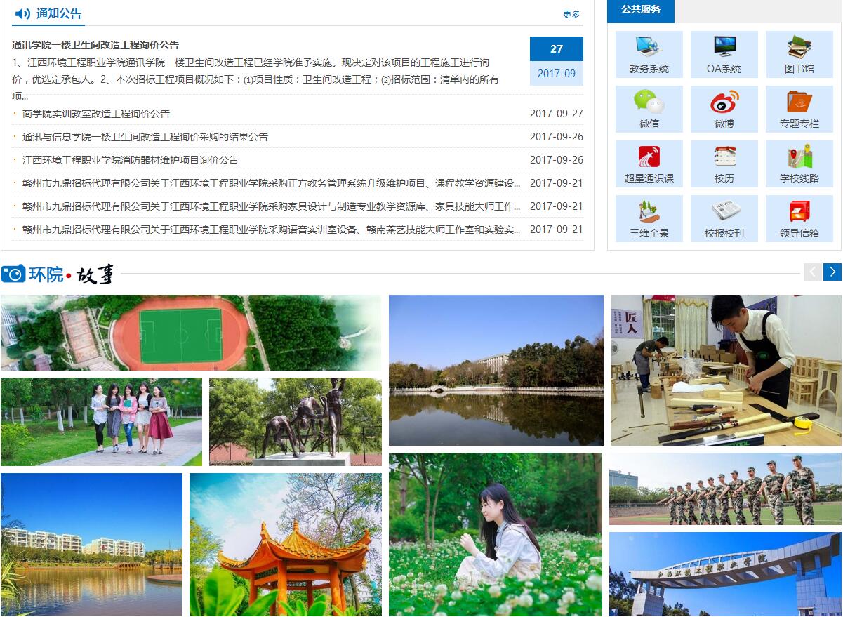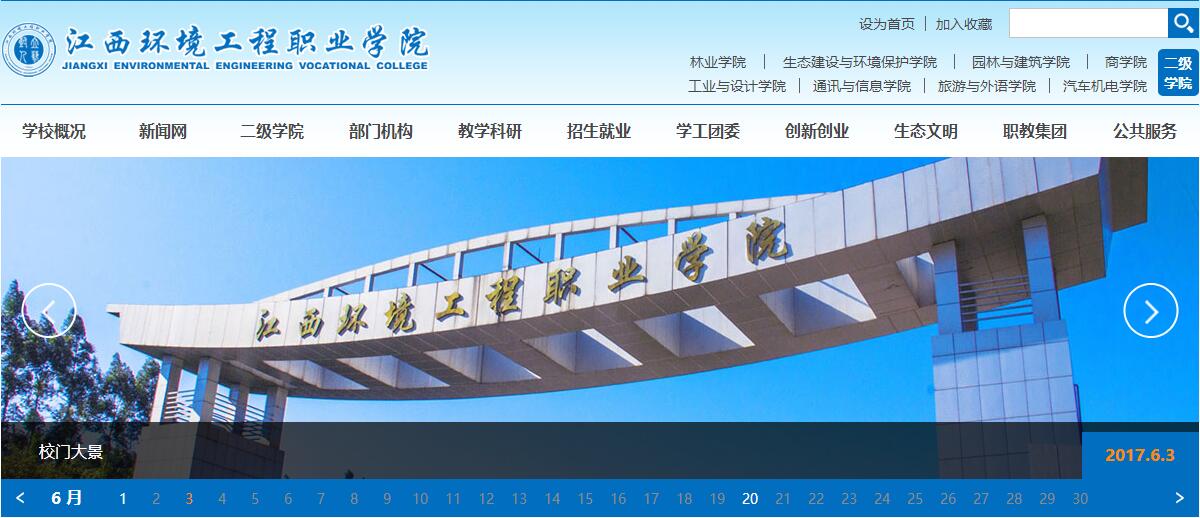 江西環(huán)境工程職業(yè)學(xué)院是一所以生態(tài)環(huán)境為特色的全日制公辦省級示范性高等職業(yè)院校,是世界技能大賽家具項目國家集訓(xùn)基地,是國家優(yōu)質(zhì)高職院校建設(shè)單位、國家生態(tài)文明教育基地、全國職業(yè)院校魅力校園、全國科普教育基地、“2014年度全國畢業(yè)生就業(yè)典型經(jīng)驗高?!保ㄋ追Q“全國就業(yè)50強”)、全國就業(yè)競爭力示范校、全國第二批職業(yè)院校數(shù)字校園建設(shè)實驗校,是江西省文明單位、江西省“森林校園”、江西省“平安校園”。
