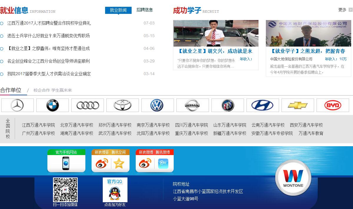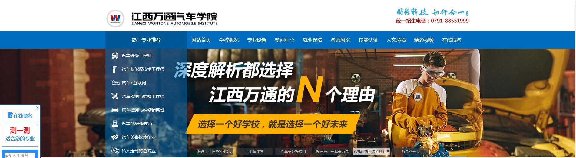 江西萬通汽車學(xué)院是汽修技術(shù)人才培養(yǎng)基地、全國汽車行業(yè)示范職教單位、汽車行業(yè)協(xié)會理事會員單位、汽修教育院校。學(xué)校位于江西省南昌市。教學(xué)樓、實訓(xùn)樓、學(xué)生公寓、多功能體育活動中心等基礎(chǔ)設(shè)施一應(yīng)俱全,并建有高等轎車檢測中心 、電控實訓(xùn)廳、整車實訓(xùn)廳、電器實訓(xùn)廳、四輪定位實訓(xùn)廳、汽車美容實訓(xùn)廳、多媒體網(wǎng)絡(luò)中心等現(xiàn)代實驗、實訓(xùn)廳等50余間,為滿足學(xué)生實踐動手操作的需要,學(xué)校擁有中、美、德、日、韓等五大車系100余部各品牌汽車供學(xué)子實戰(zhàn) 、實訓(xùn)。其中,校園汽車4S模擬教學(xué)基地和汽車美容創(chuàng)業(yè)項目示范中心領(lǐng)跑國內(nèi)職業(yè)教育。