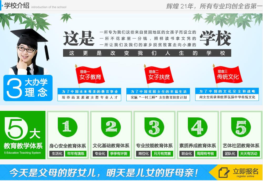 南昌市女子中等專業(yè)學(xué)校、南昌女子職業(yè)學(xué)校創(chuàng)辦于1992年,是全國第一所女子職業(yè)學(xué)校,江西省第一所民辦學(xué)校。學(xué)校確定了“為了中國未來母親的教育事業(yè),培養(yǎng)高素質(zhì)淑女型專業(yè)人才”、“為了中國貧困女生的幸福生活,實施‘一村三師’女子教育扶貧計劃”、“為了中國文化的安全和戰(zhàn)略,向女生傳承和世界弘揚中華傳統(tǒng)文化”的三大辦學(xué)理念,累計培養(yǎng)女生超過3萬名。