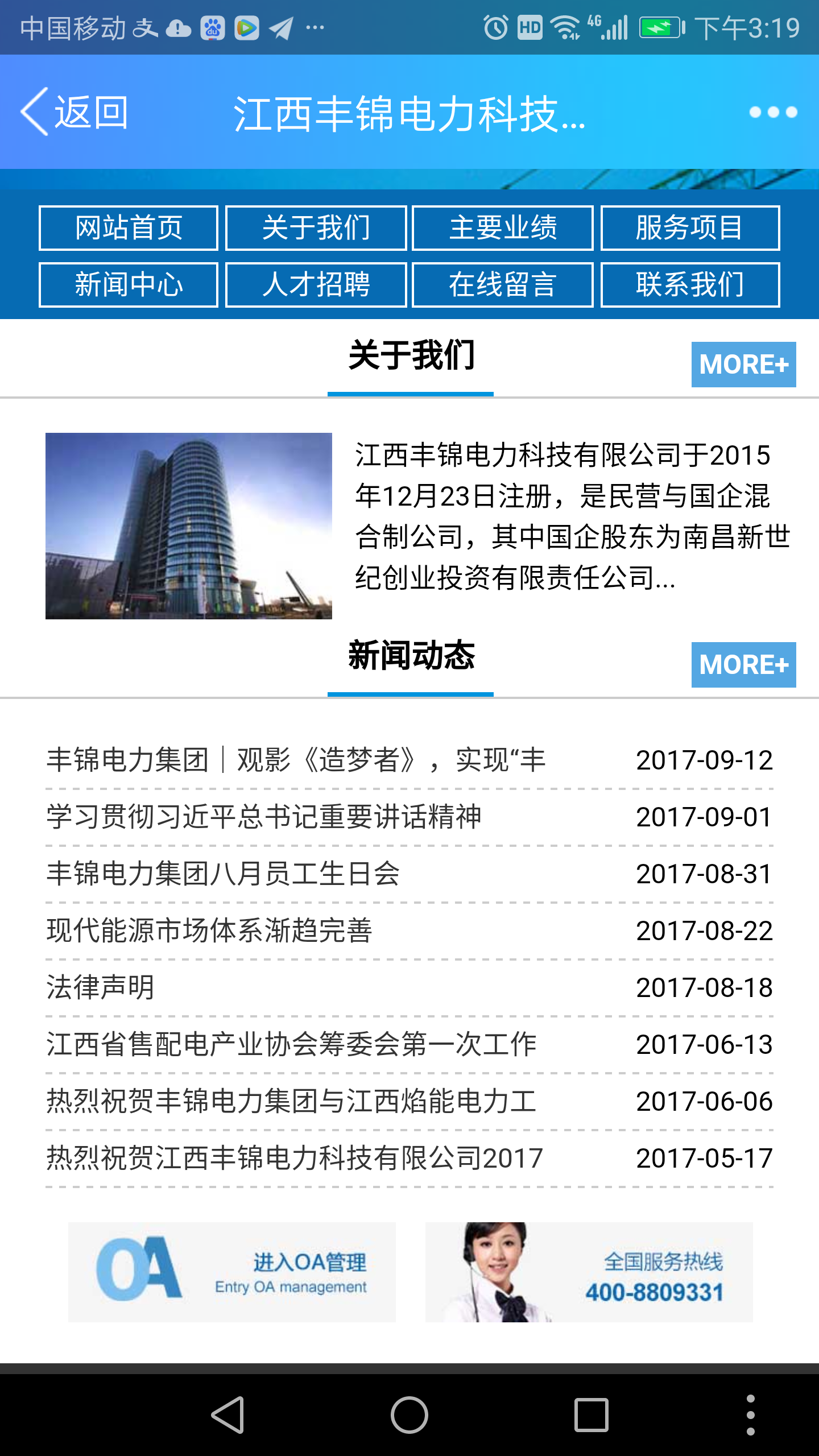 手機站相對于PC站而言顯得非常的簡單精簡,并沒有PC端那么深的鏈接深度,一般情況下手機站的所有的主欄目都在首頁可以看到,大多數(shù)為三級精簡欄目:首頁 - 欄目頁 - 詳情頁。以南昌雅騰科技給江西豐錦電力科技公司做的手機端網(wǎng)站為例。