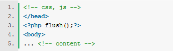 用戶端發(fā)送瀏覽請(qǐng)求后,服務(wù)器端一般要花銷200-500ms去處理這些請(qǐng)求,在此期間,用戶端瀏覽器處于等待狀態(tài),如果要減少用戶等待時(shí)間,可以在適當(dāng)?shù)奈恢檬褂胒lush,將已經(jīng)就緒的內(nèi)容推送到用戶端,這在php中很容易實(shí)現(xiàn)例如: