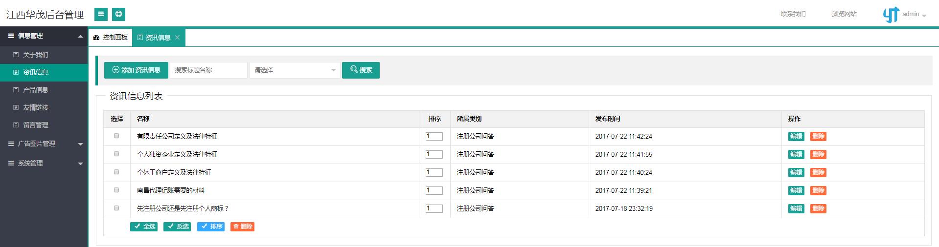 南昌雅騰科技給江西華茂公司開(kāi)發(fā)的管理后臺(tái)